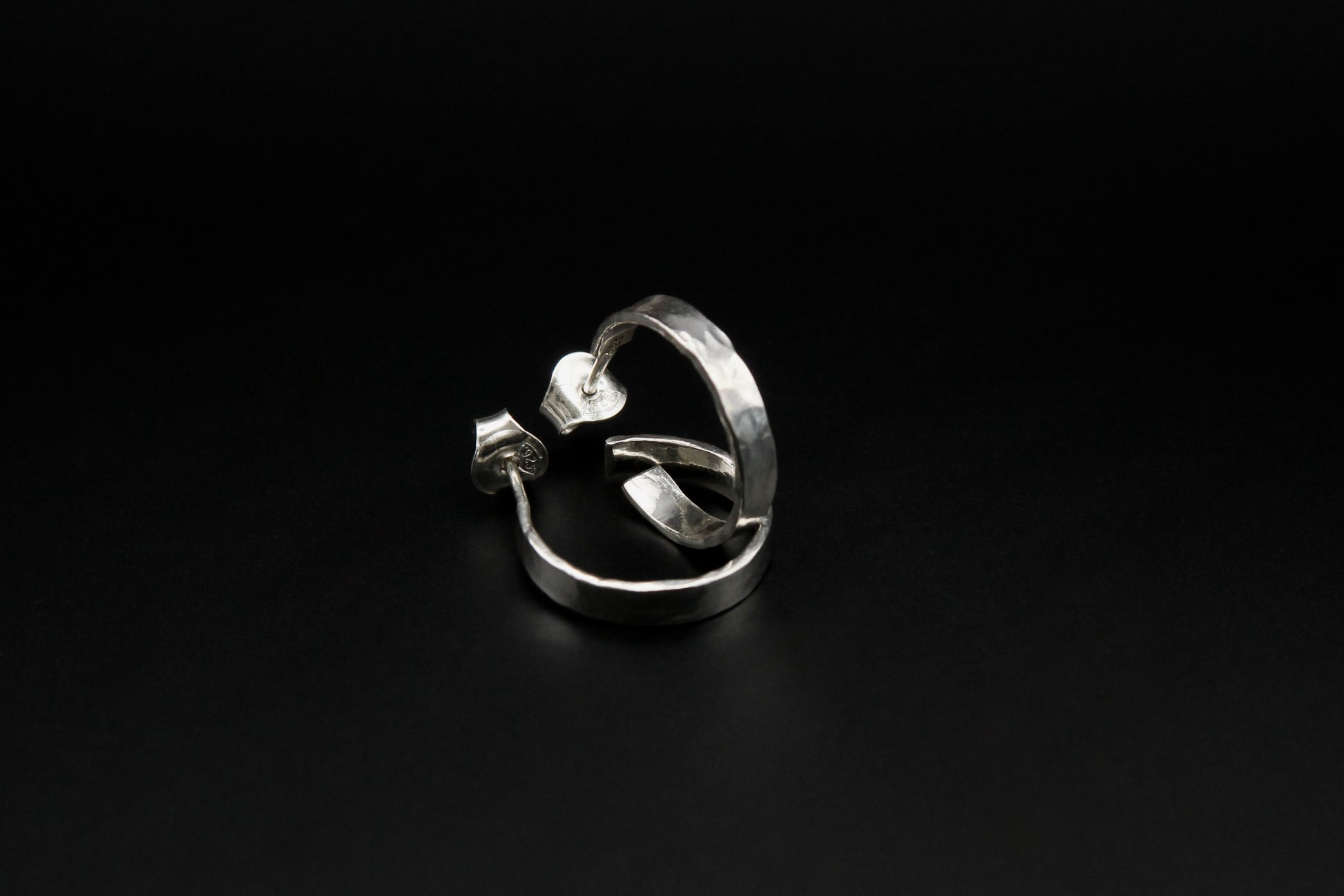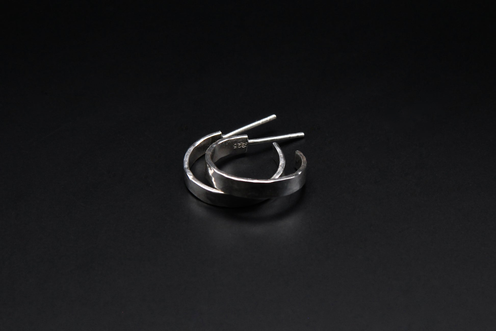 The Arc Hoops distil strength into a smaller form. Hand-forged and hammered into shape, they carry a quiet attitude — a minimal staple with an edge.