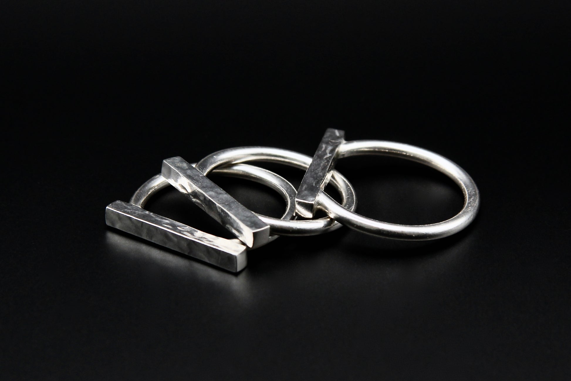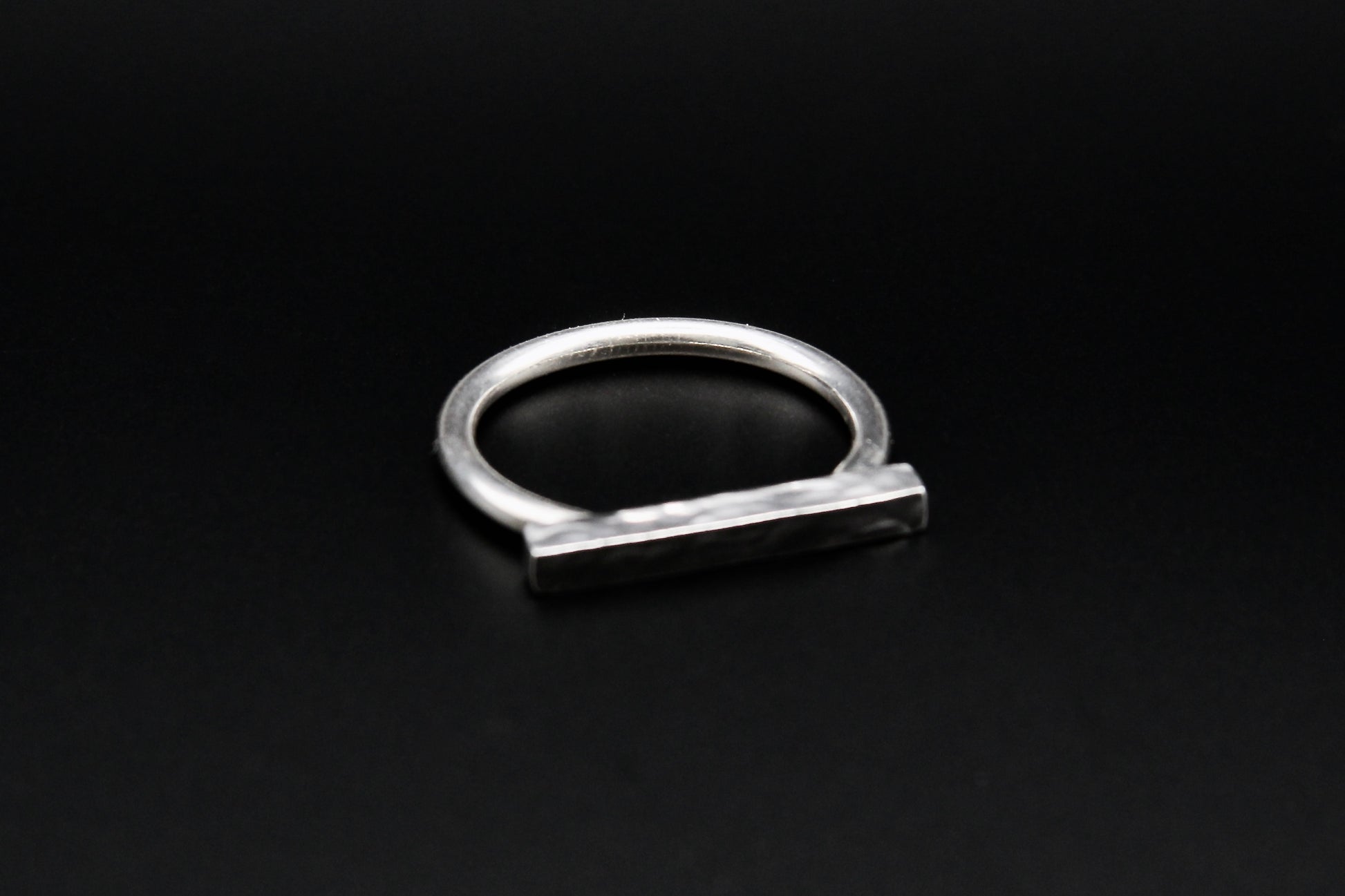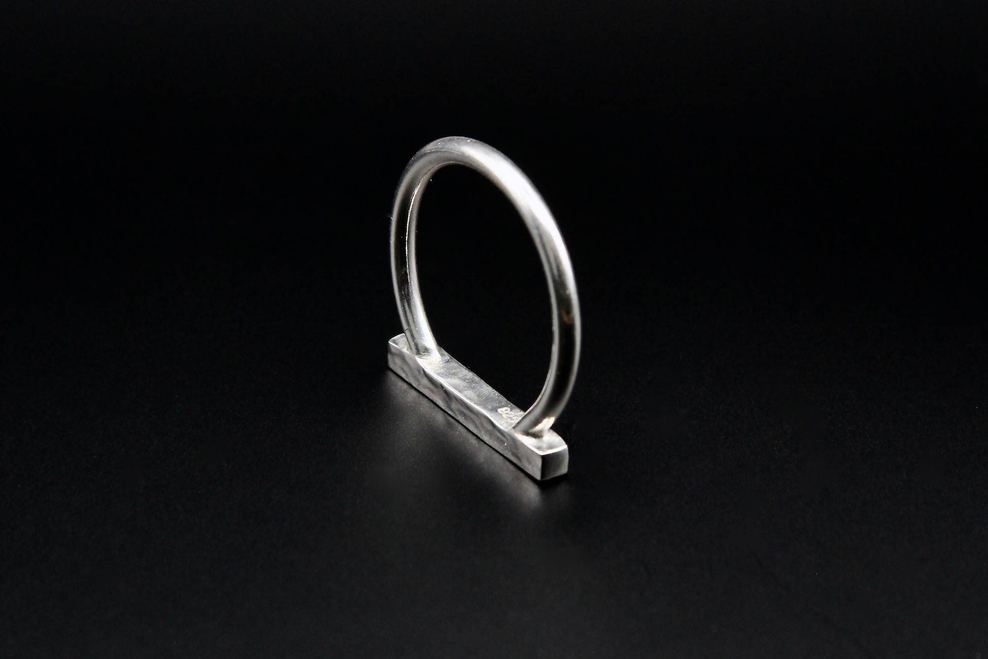 A solid bar sits across a clean circular band — minimal form, maximum intent. The Axis Ring doesn’t try to shine; it owns its space. Hand-forged in sterling silver, built to be lived in.