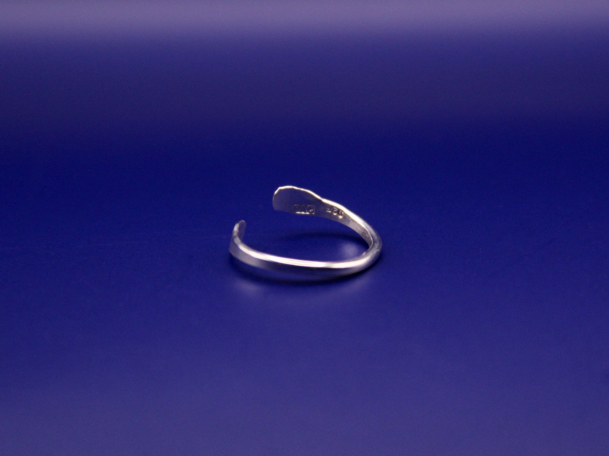 An open band split at the front. Forged in silver, made to hold its ground.