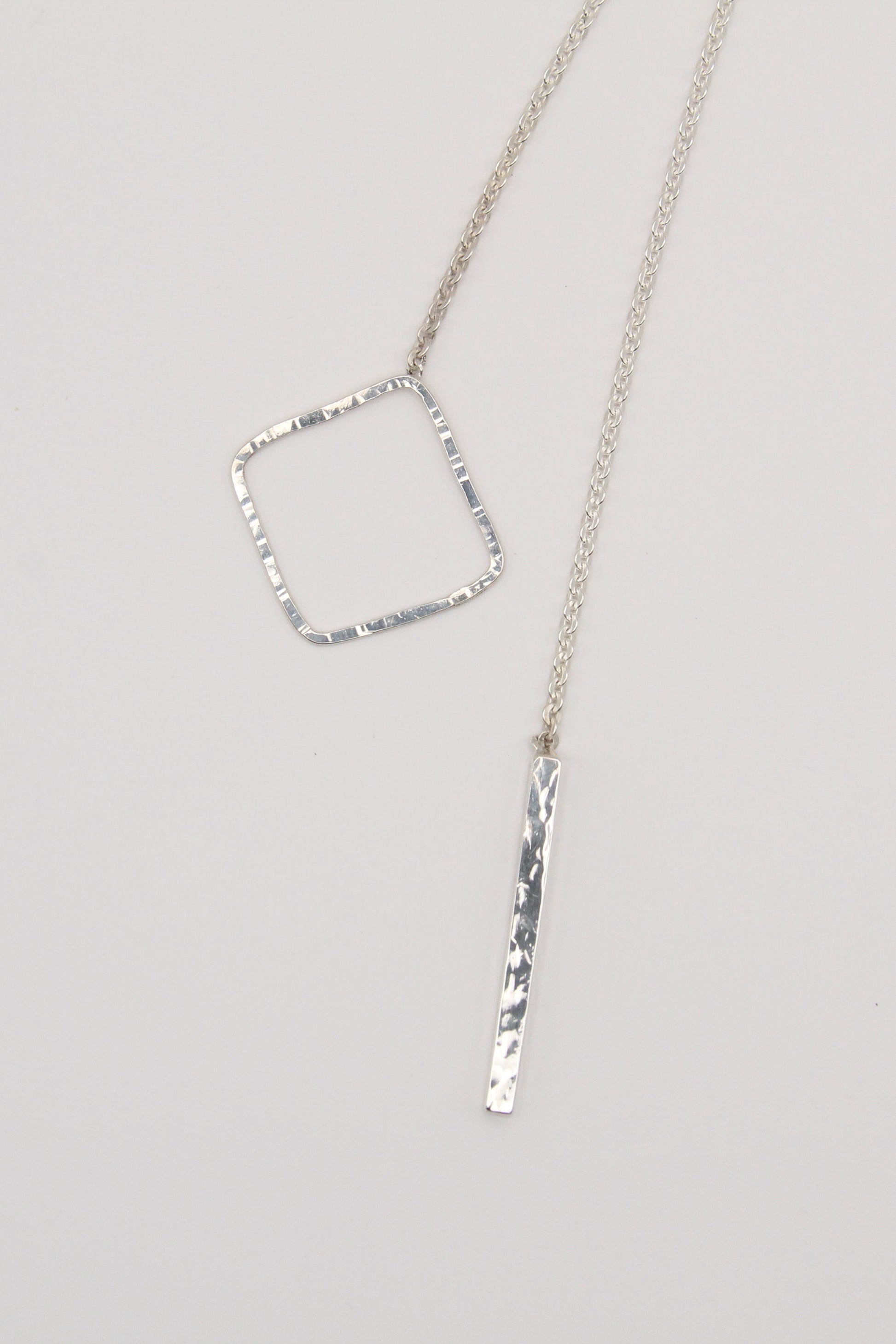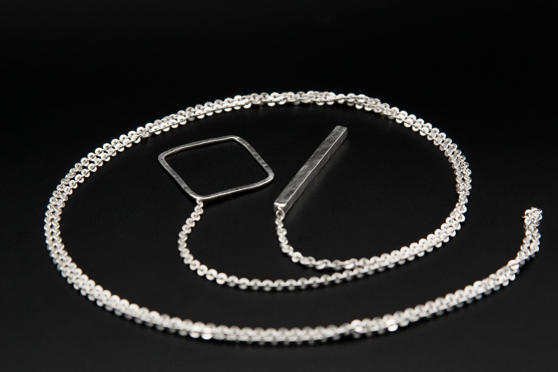 The Spur Necklace redefines function through design. With no clasp, it fastens through its own geometry — a hammered bar threading through a Dimond loop. Wear it short and structured, or long and relaxed. Sculptural, versatile, and crafted with intent.